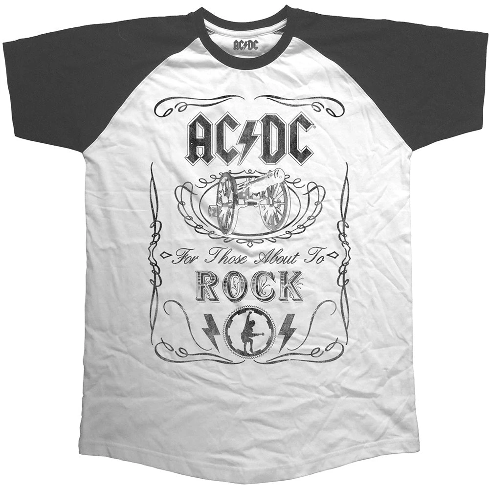 An official licensed unisex soft-style cotton Raglan Tee featuring the AC/DC ‘Cannon Swig Vintage’ design motif. This high quality t-shirt is available in a black & white colourway.