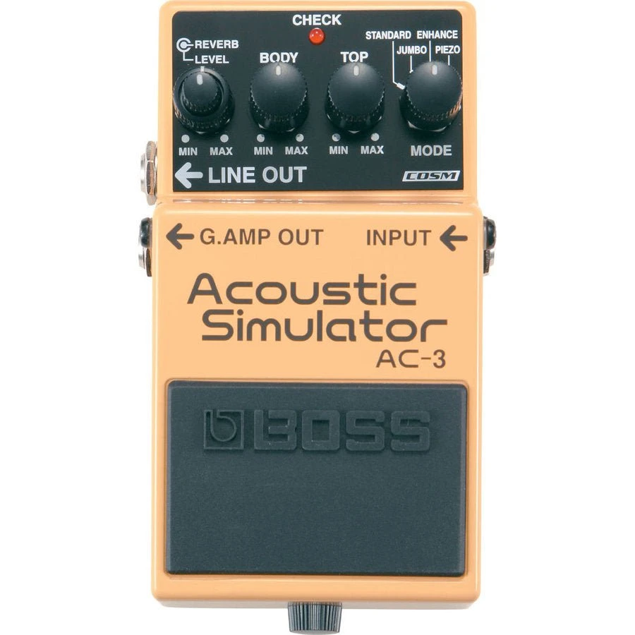BOSS is pleased to offer another “Authentic BOSS” Compact Pedal; the AC-3. How many times have you been onstage or in the studio with your electric guitar, and wished that you’d brought an acoustic along? For musicians who travel light, hauling an extra guitar to the gig isn’t always the most attractive option. BOSS AC-3 to the rescue! This new-generation compact pedal employs COSM modeling technology to transform any electric guitar into a variety of beautiful acoustic guitars.