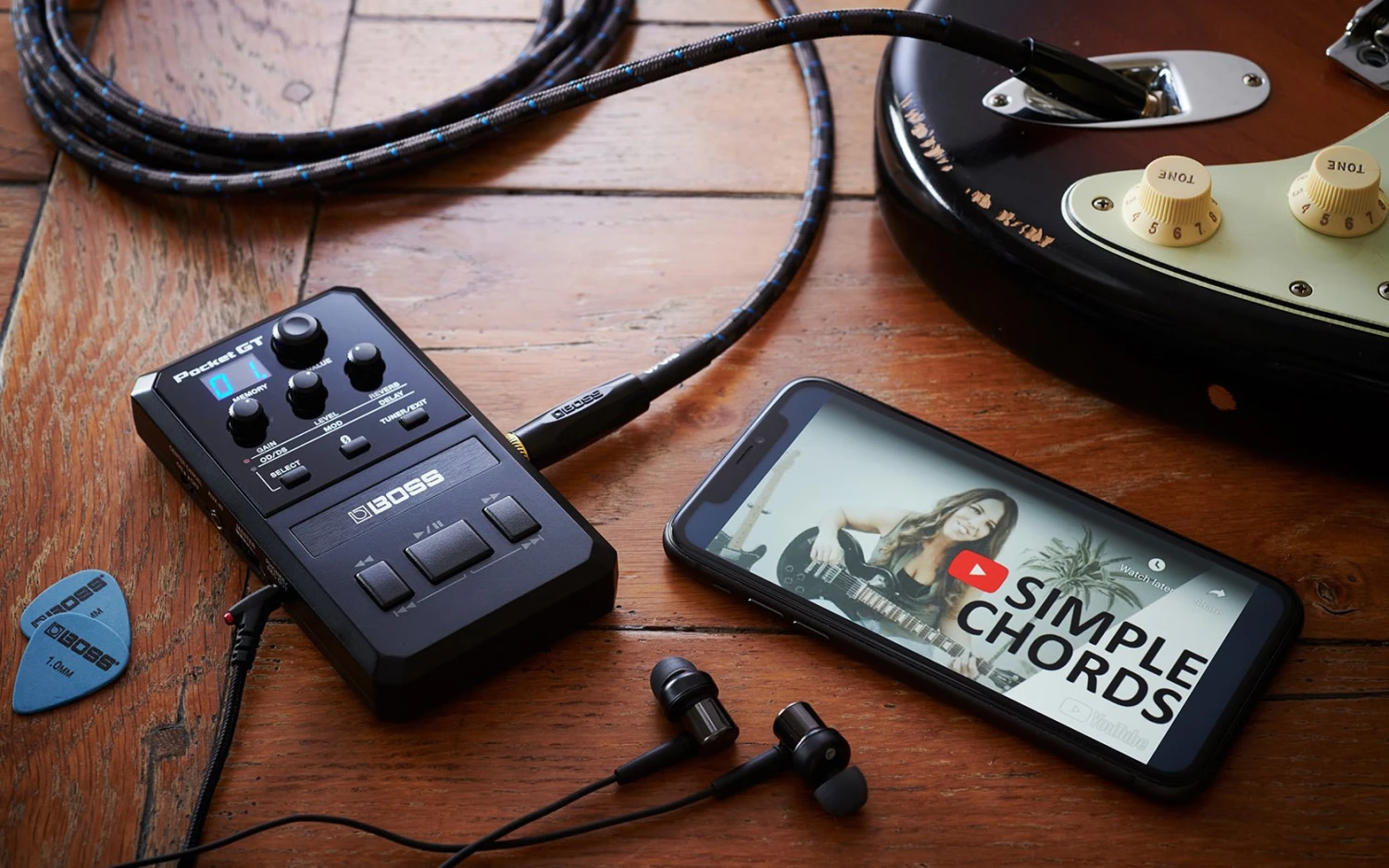 - Companion BOSS Tone Studio app (iOS/Android/Mac/Windows) with built-in YouTube browser and deep tone editing tools