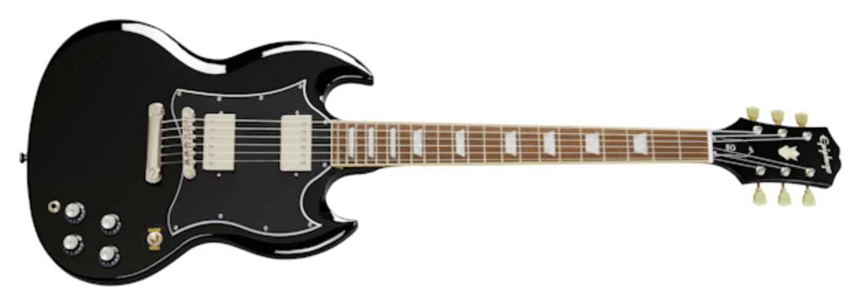 The Epiphone SG Standard from the new Inspired by Gibson Collection, recreates the legendary 1960s classic that powered the first generation of hard rock and heavy metal bands including The Who, Cream, AC/DC, and Black Sabbath. The guitar features the historic SG profile with “batwing” pickguard, a pair of Epiphone’s Alnico Classic PRO™ humbuckers, and 18:1 ratio Epiphone Deluxe Tuners. This Epiphone Inspired by Gibson Original model also has the Kalamazoo headstock, rolled neck for a comfortable feel, GraphTech® NuBone™ nut, era-appropriate wiring, and CTS pots.