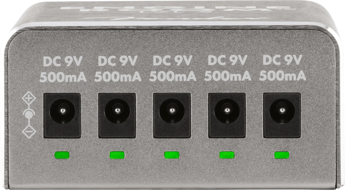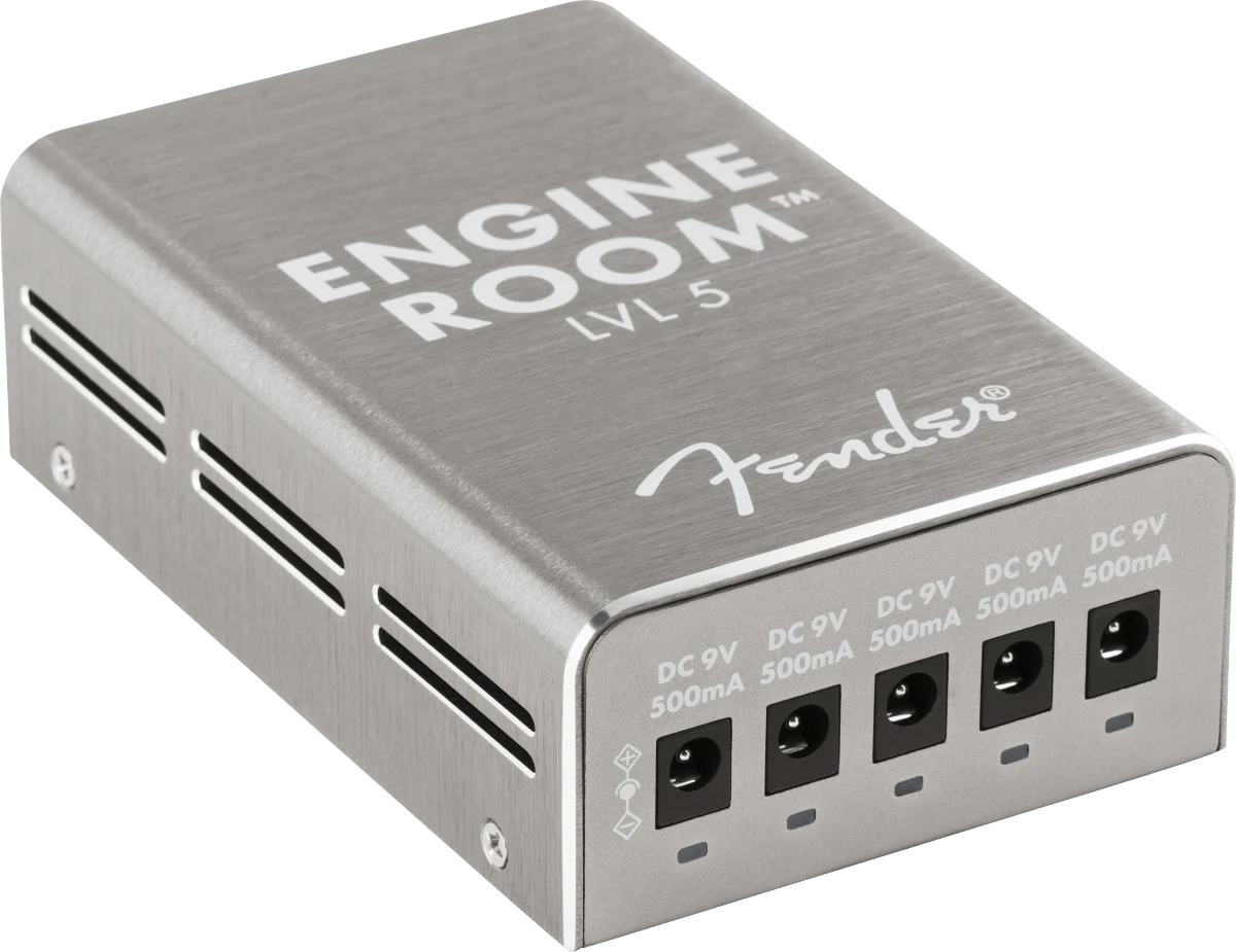 Pedals need clean, isolated power and Fender’s Engine Room® LVL5 Power Supply is capable of the task. Featuring five ground isolated power outlets, each outlet is capable of 9Vdc at 500mA to keep your pedals performing at their peak. Works as a standalone power supply for smaller pedalboards or can be daisy-chained with our LVL 12 for those tone fanatics with larger boards.