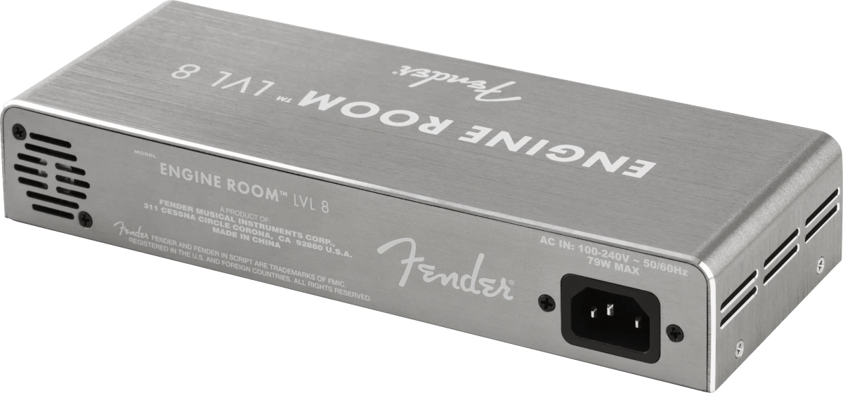The Engine Room™ Power Supply is designed by our in-house team of experts in Southern California. The chassis is crafted from lightweight, durable anodized aluminum, and its sleek, low-profile appearance is engineered to accommodate most pedalboards. Also features a 2-color LED indicator for each output, green indicating current consumption. Road-tested and ready for live or studio use, Fender’s Engine Room™ Power Supply is built to power your performance.