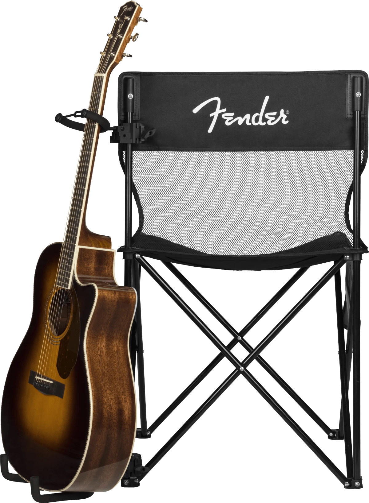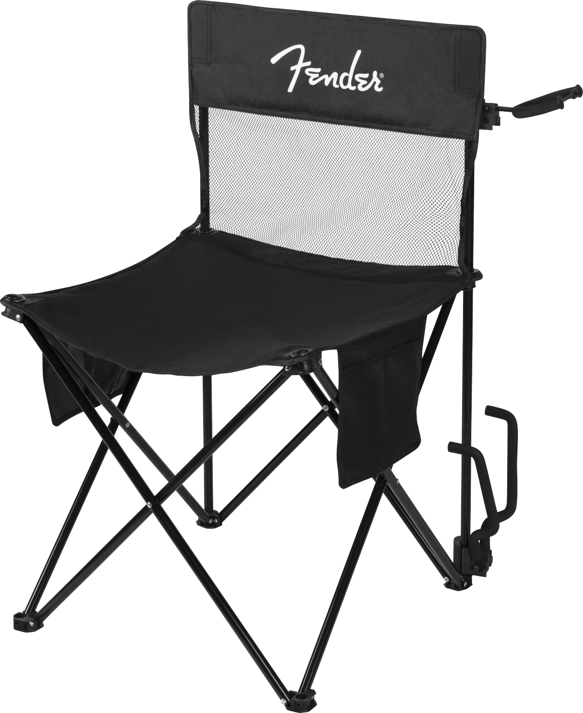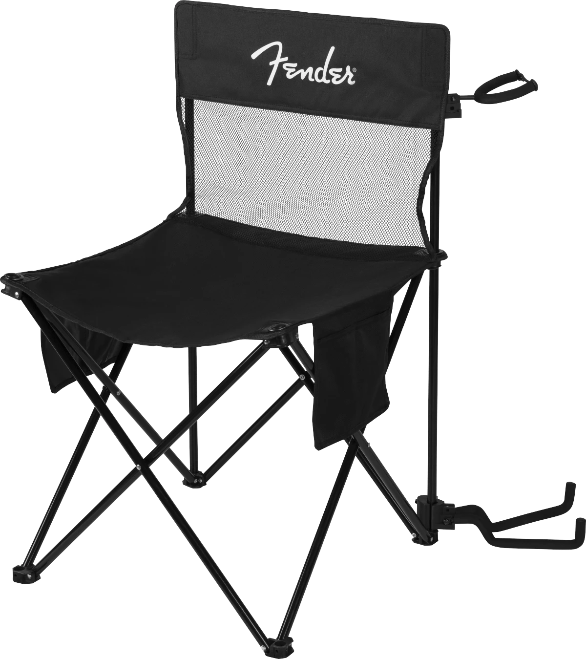 The Fender® Festival Chair/Stand is the ultimate accessory for outdoor enthusiasts and guitar lovers alike. Crafted from durable materials, the Festival Chair is designed to withstand the rigors of outdoor use, while the compact design and removable stand yokes make it easy to transport and store. A portable campfire, beach or concert chair with an integrated guitar stand solution, this chair is designed for musicians on-the-go.
