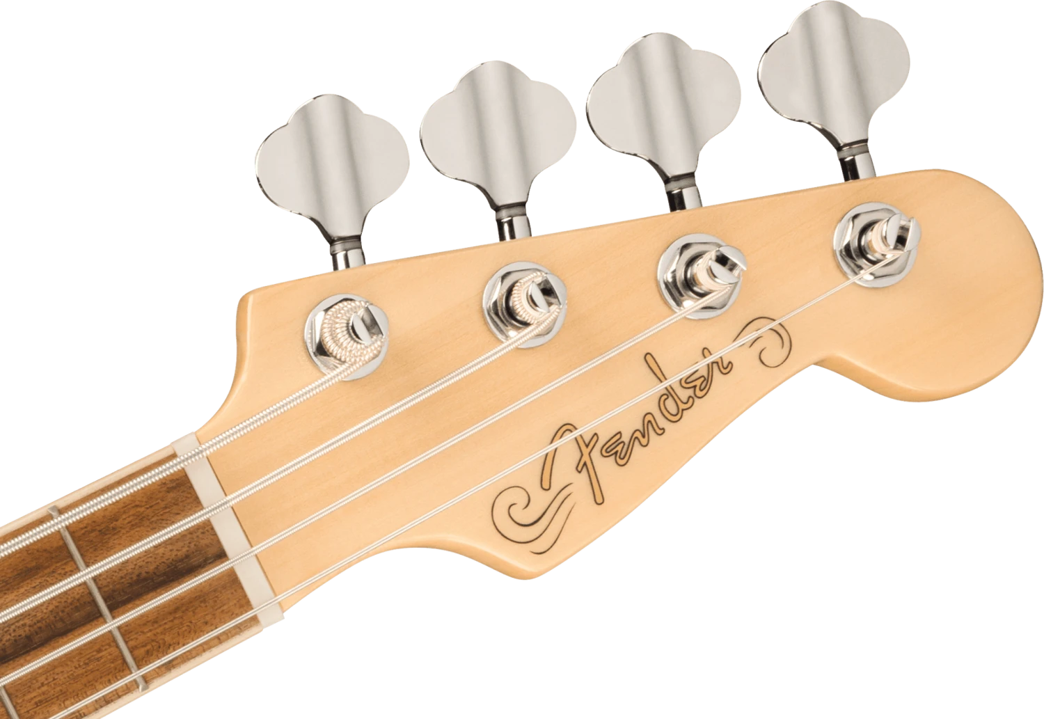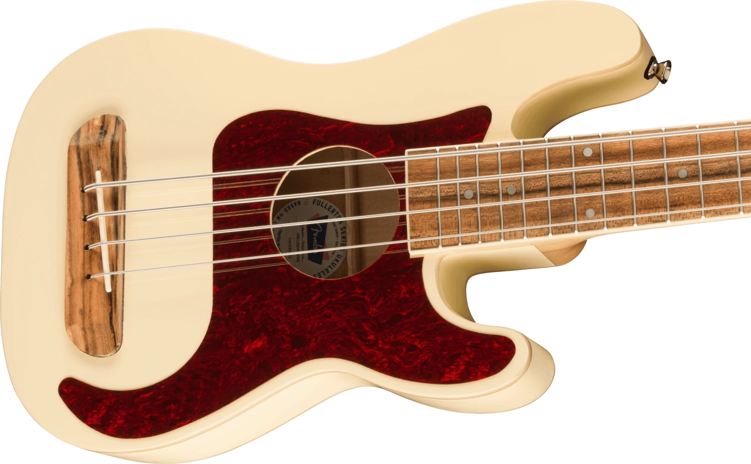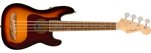 A celebration of Fender’s pioneering electric bass design in a refreshingly fun size, the Fullerton Precision Bass® ukulele is nothing short of electric. Uniquely portable and performance-ready, the Precision Bass ukulele features an approachable 20.25″ scale length, compact proportions and surprising lightness, making it remarkably easy to pick up and impossible to put down. With a built-in tuner for on-the-fly adjustment and intuitive controls for volume and tone, the on-board preamp packs an articulate low-end and big tonal personality that punches far above its weight. Offered in classic Fender colors with a signature Precision Bass pickguard and headstock shape, this bass is ready to lay the foundation for any player at any stage.