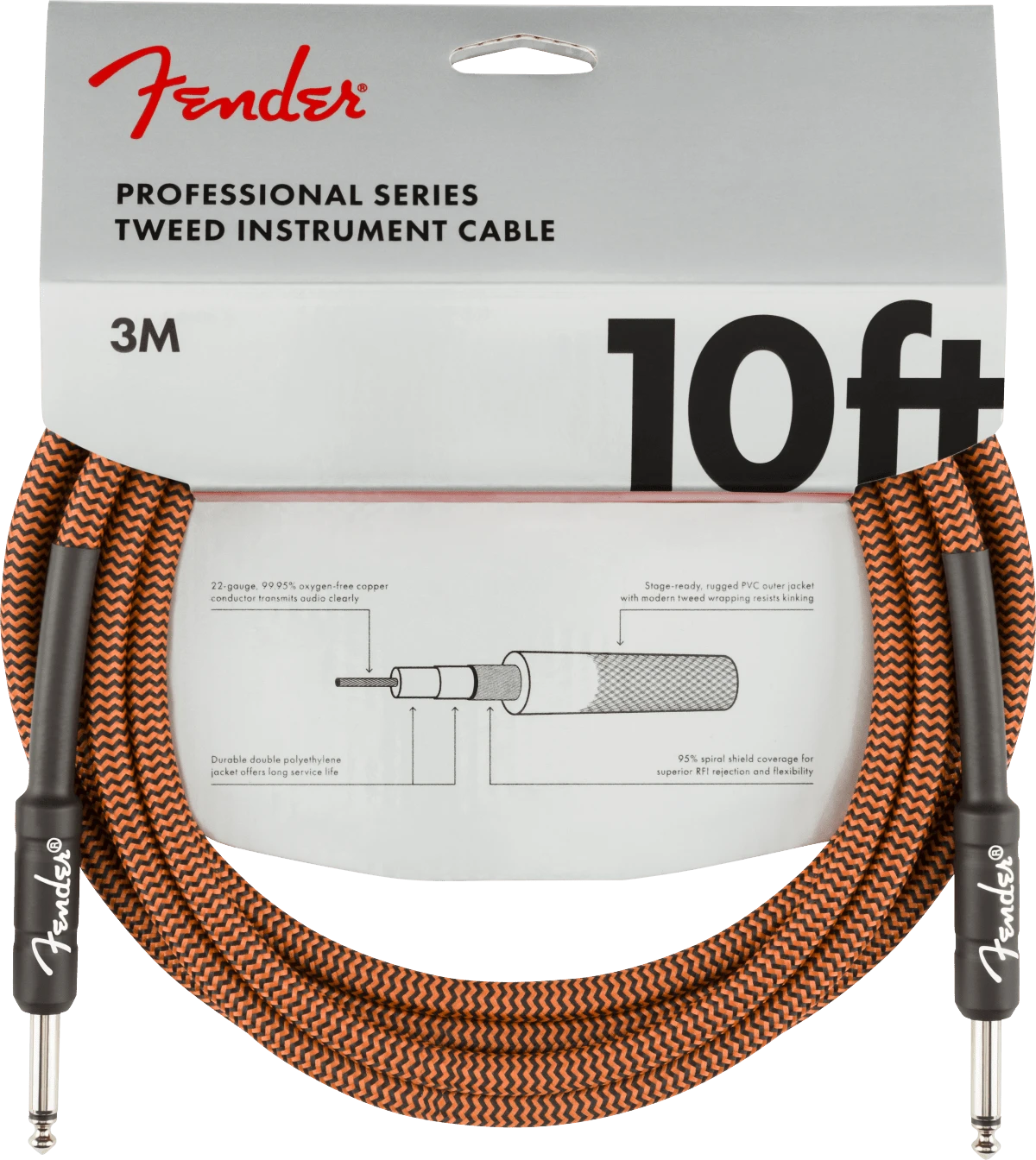 Fender Professional 10′ Instrument Cable, Orange/Black Limited-Edition