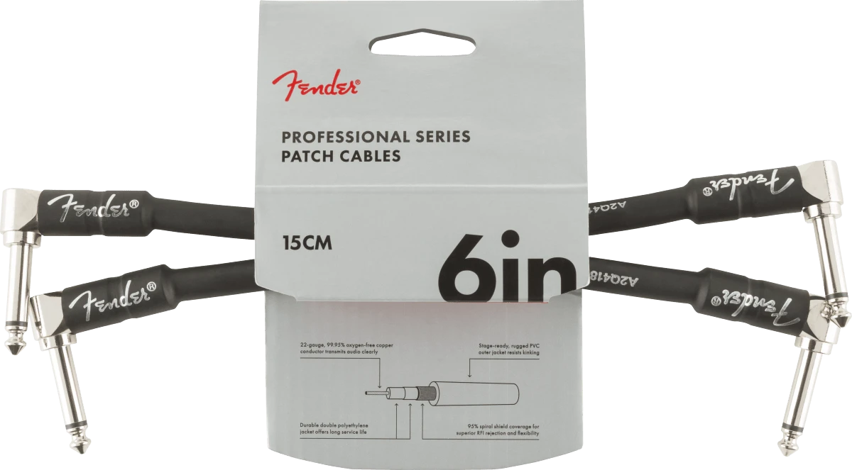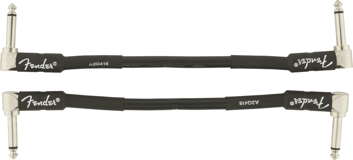 Fender Professional Series Instrument Cable 2-Pack, Angle/Angle, 6″, Black