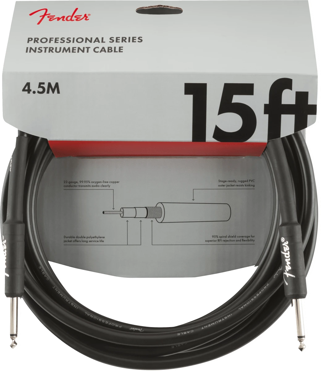 Fender Professional Series Instrument Cable, Straight/Straight, 15′, Black