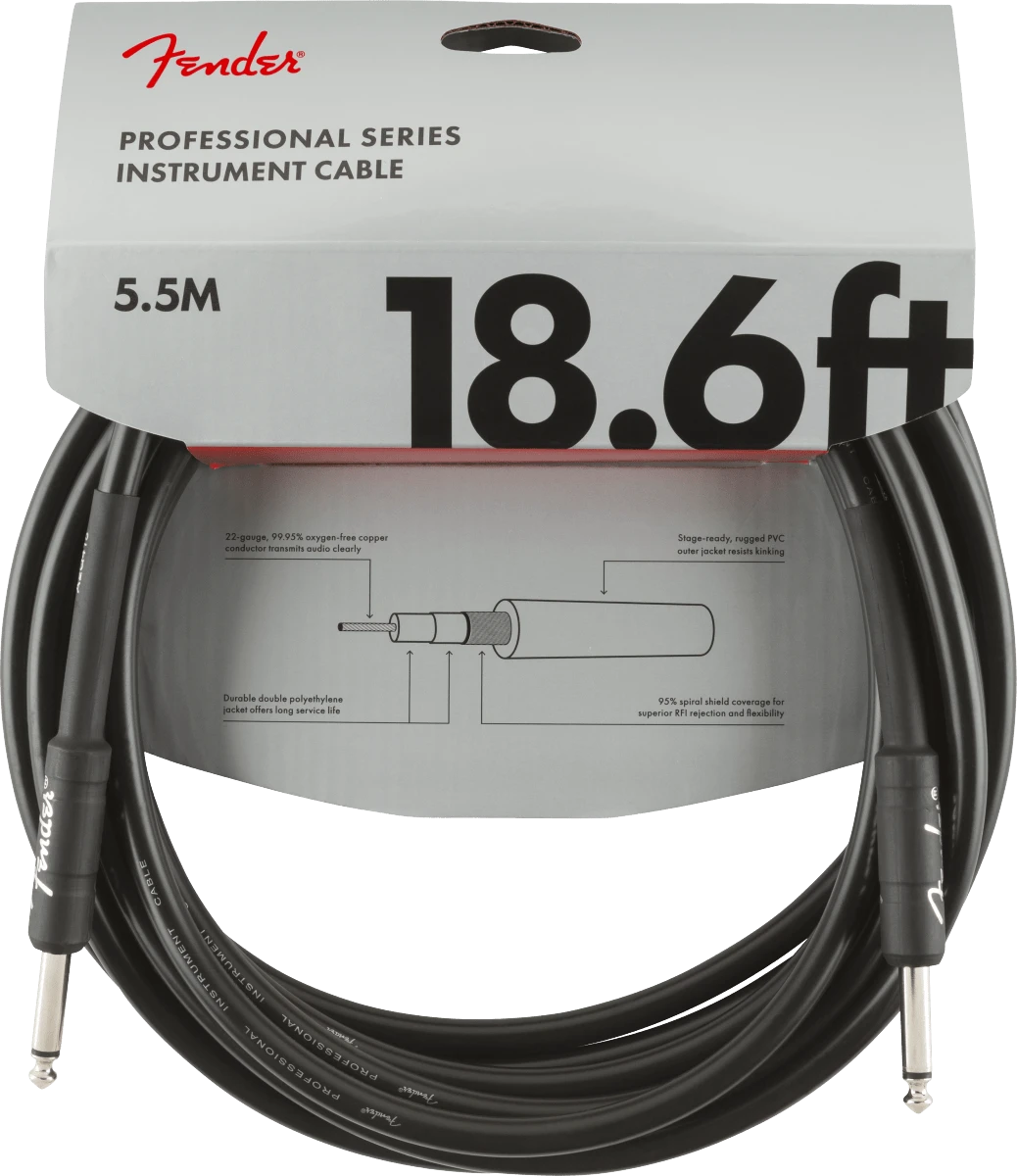 Fender Professional Series Instrument Cable, Straight/Straight, 18.6′, Black