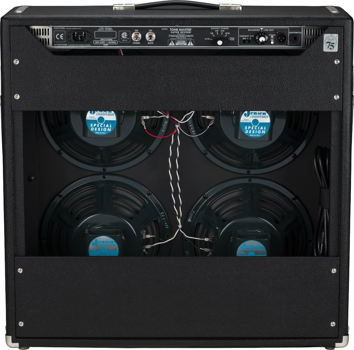 The Tone Master Super Reverb is the magical combination of the mid-60s black panel amplifier circuit and four 10” speakers. It’s got the unique beefy sound of the large 4×10 cabinet, the chime of the Jensen speakers, and an easily driven mid-powered 45W(simulated) amplifier. There’s no mistaking this sound when you plug into it, and now you can lift it easily and set the volume to the venue. With modern features including selectable output power and IR line out, the Tone Master Super Reverb is ideal for stage, studio, or home use.
