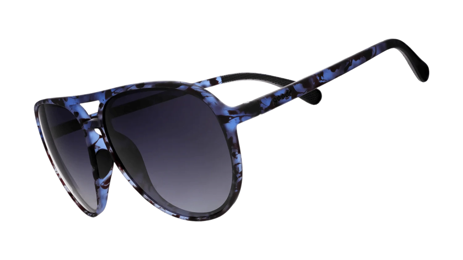 Avoid eye contact at all costs with these Mach Gs featuring translucent blue tortoiseshell frames and black gradient lenses. They’re perfect for cultivating the mystery and low-key allure you naturally radiate! Plus, eye contact is way overrated.