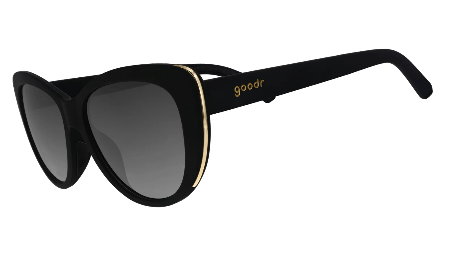 These black cat-eye sunglasses with black non-reflective lenses & light gold accents are giving fashion icon. Won’t slip or bounce when vogueing down the catwalk or the sidewalk.