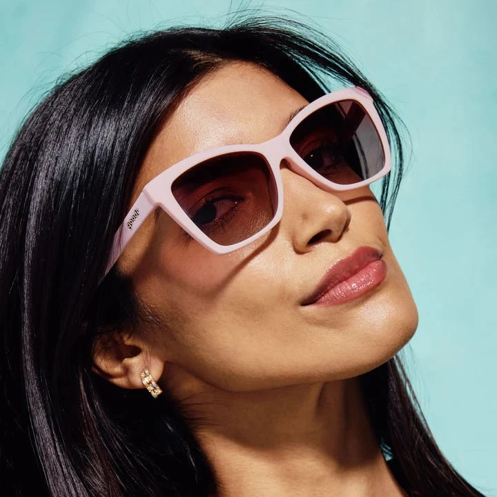 Did you know retail therapy releases dopamine?! THAT’S why it feels so damn good!!! Top off your shopping spree with a glass of rosé and a pair of these light pink Pop G sunnies with rose ocean gradient lenses for the ultimate feel-good formula.