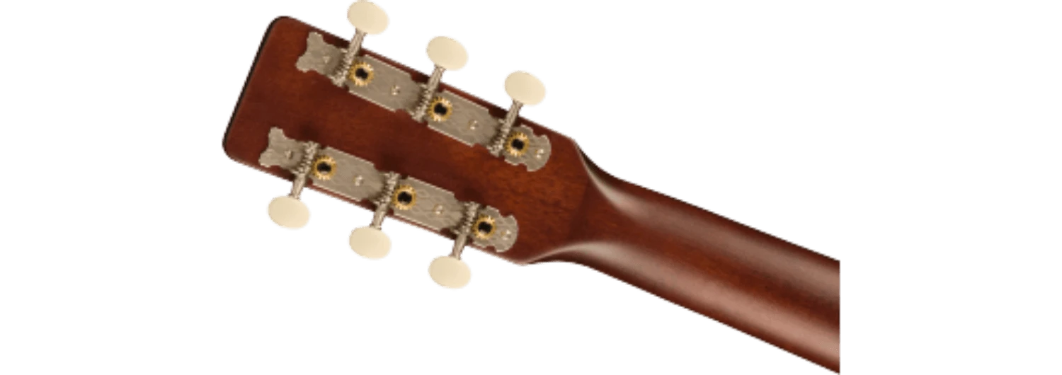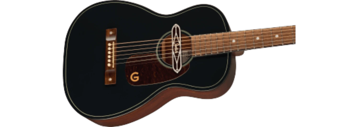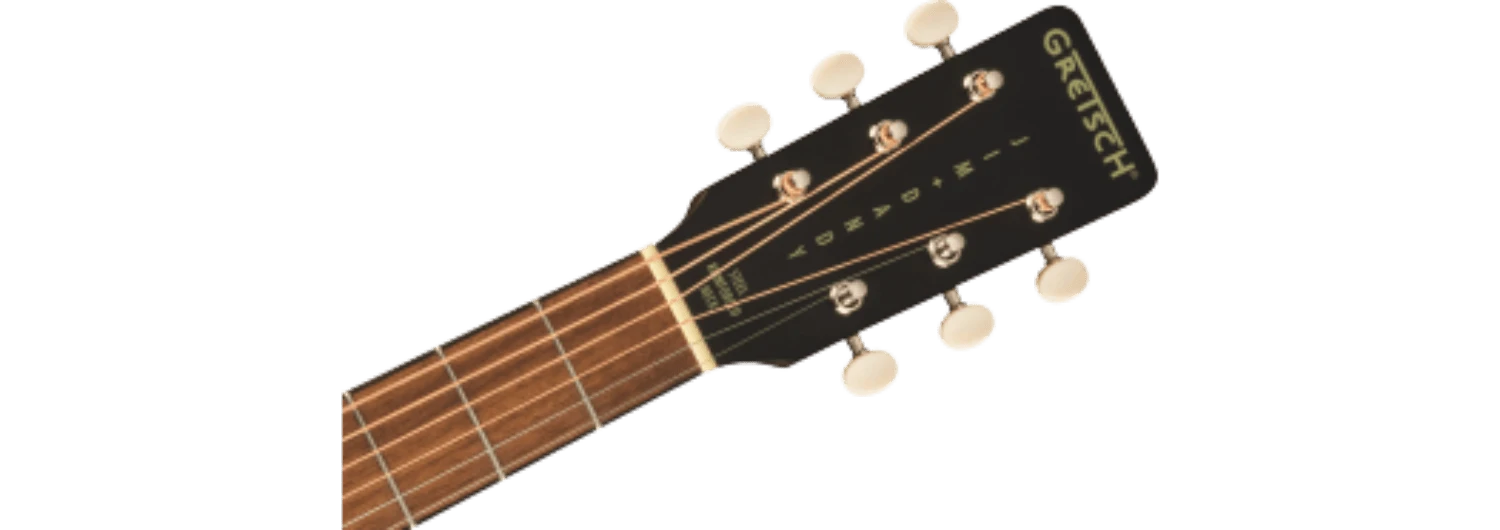 The X-braced body is crafted with select lightweight laminate tonewoods for an optimal balance of woody vintage tone and reliable durability, while the “C”-shape neck presents an inviting feel for hours of old-timey inspiration. The onboard Gretsch Deltoluxe magnetic soundhole pickup produces versatile electrified acoustic tone, providing added utility for live performance, recording, and effects pedals. Period-correct details such as a vintage-style pinned bridge, “G”-graphic pickguard, painted pinstripe purfling, 3-on-a-plate open-gear tuning machines and oversized dot fingerboard inlays combine for a nostalgic personality destined for any barnburner or jamboree.