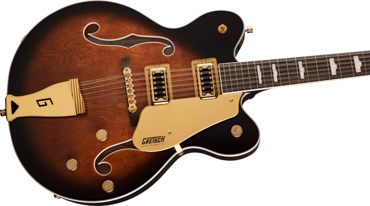Alive and loud, the G5422G-12 is available in Single Barrel Burst or Walnut Stain finishes with gold hardware and gold pickguard.