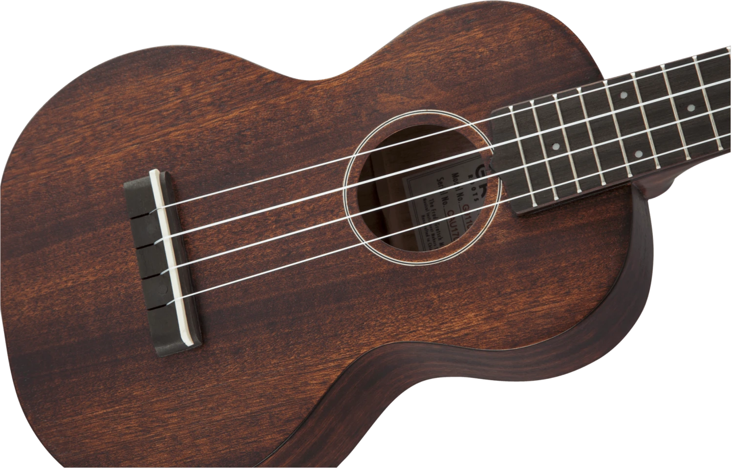 The G9110 Concert Standard features a 15” scale length, mahogany top, back and sides, mahogany neck and ovangkol fingerboard with 16 frets (12 to body). The G9110 also has an ovangkol bridge, bone nut and saddle, open-back geared tuners, Aquila® Nylgut® strings and comes in a fitted gig bag.