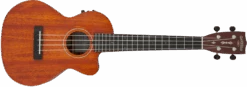 The G9121 A.C.E Tenor Ukulele features a Fishman® Kula pickup with preamp, mahogany top, back and sides, one-piece mahogany neck and 19-fret ovangkol fingerboard with “snowflake” position markers. The G9121 also comes with an ovangkol bridge, bone nut and saddle, Grover® 9NB Sta-Tite™ geared tuners, Aquila® Nylgut® strings and deluxe fitted gig bag.