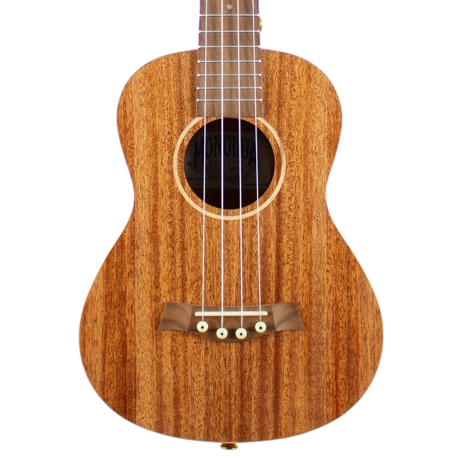 Revered for its warm, mellow tones, mahogany has long been a staple in the construction of musical instruments. Our Mano series embraces the popular combination of mahogany top with mahogany body for a classic look and rich sound. As with all Honolua Ukuleles, it includes premium features designed to produce the best tone possible at an affordable price, including solid mahogany top for greater volume and better tone, bone nut and saddle for better clarity and sustain, open back machine heads for tuning precision and eco-friendly wood selection.