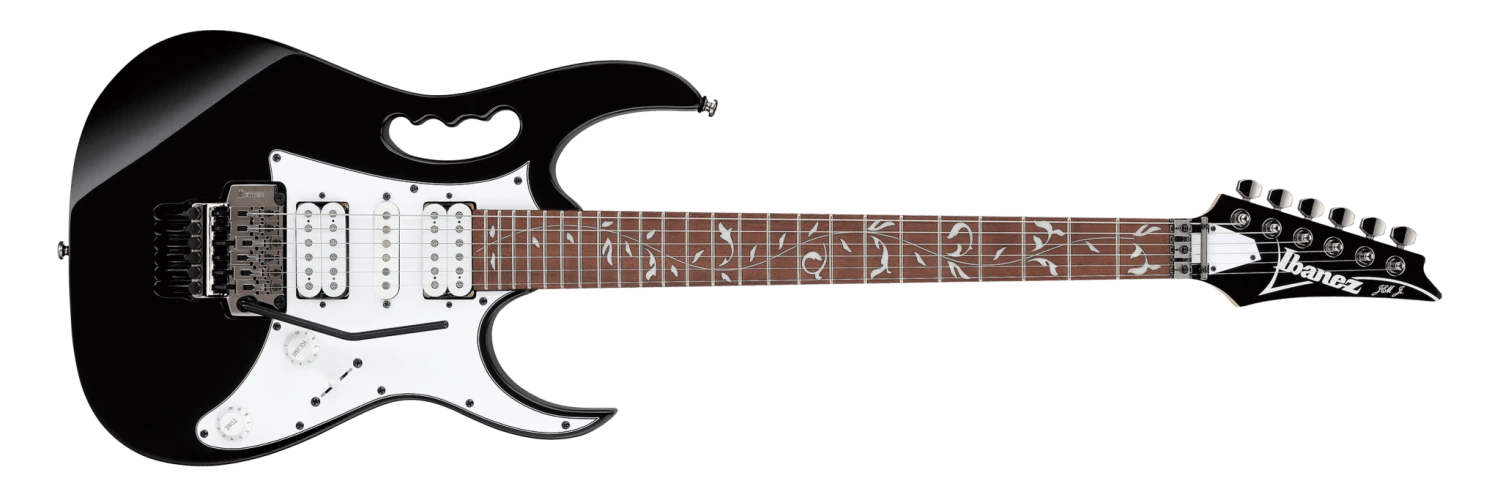 Steve Vai’s signature guitars have become almost as iconic as the player himself, and now that mojo is more attainable than ever with the Ibanez JEMJR Steve Vai Signature solidbody electric guitar. From the acrylic vine inlay to the instantly recognizable “monkey grip” handle, there’s no doubt where the JEMJR Steve Vai Signature came from. For tonal tenacity, you get two Quantum humbuckers and one Quantum single-coil pickup complete with 5-way switching. Factor in the double-locking tremolo bridge, and the Ibanez JEMJR Steve Vai Signature is ready to wail.