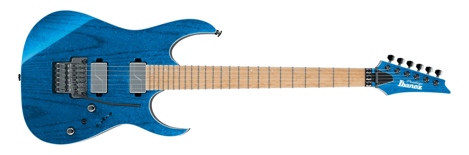 It’s hard not to notice the RG5120M. Constructed with a stunning Frozen Ocean finish ash-top and African Mahogany body, 5-piece Maple/Wenge neck and Birdseye Maple fretboard with Mother of Pearl inlay. The Fishman Fluence Modern Humbucker Ceramic pickups are also hard to ignore, producing a modern, active high-output sound or a crisp, clean and fluid sound. The Lo-Pro Edge bridge offers maximum playing comfort due to its streamlined profile and recessed fine tuners. Includes a luminescent side-dot inlay- the RG5120M is sure to stand out in any setting.