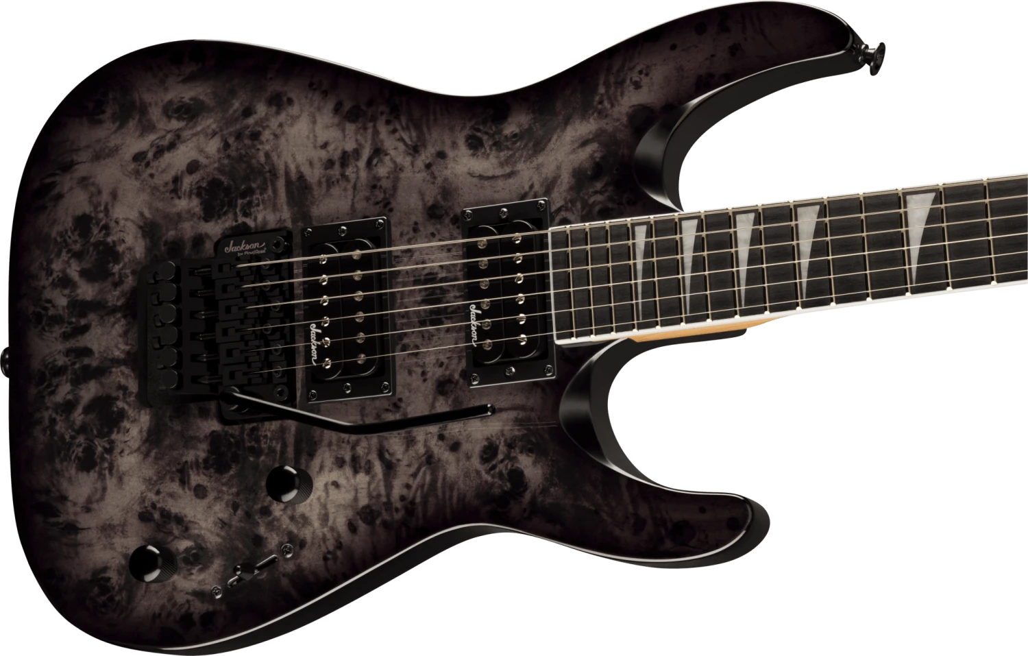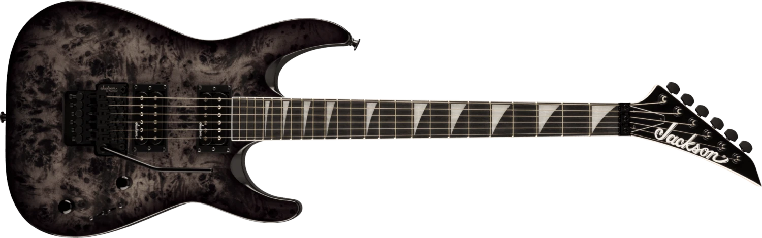 Dual Jackson high-output humbucking pickups with ceramic magnets erupt with hot, crunchy tone perfect for any flavor of hard rock or heavy metal. Dial in tone to your preference with three-way blade switching and single volume and tone controls, and wail away at will as the Jackson-branded Floyd Rose® licensed double-locking bridge provides dynamic trem action with tuning stability.