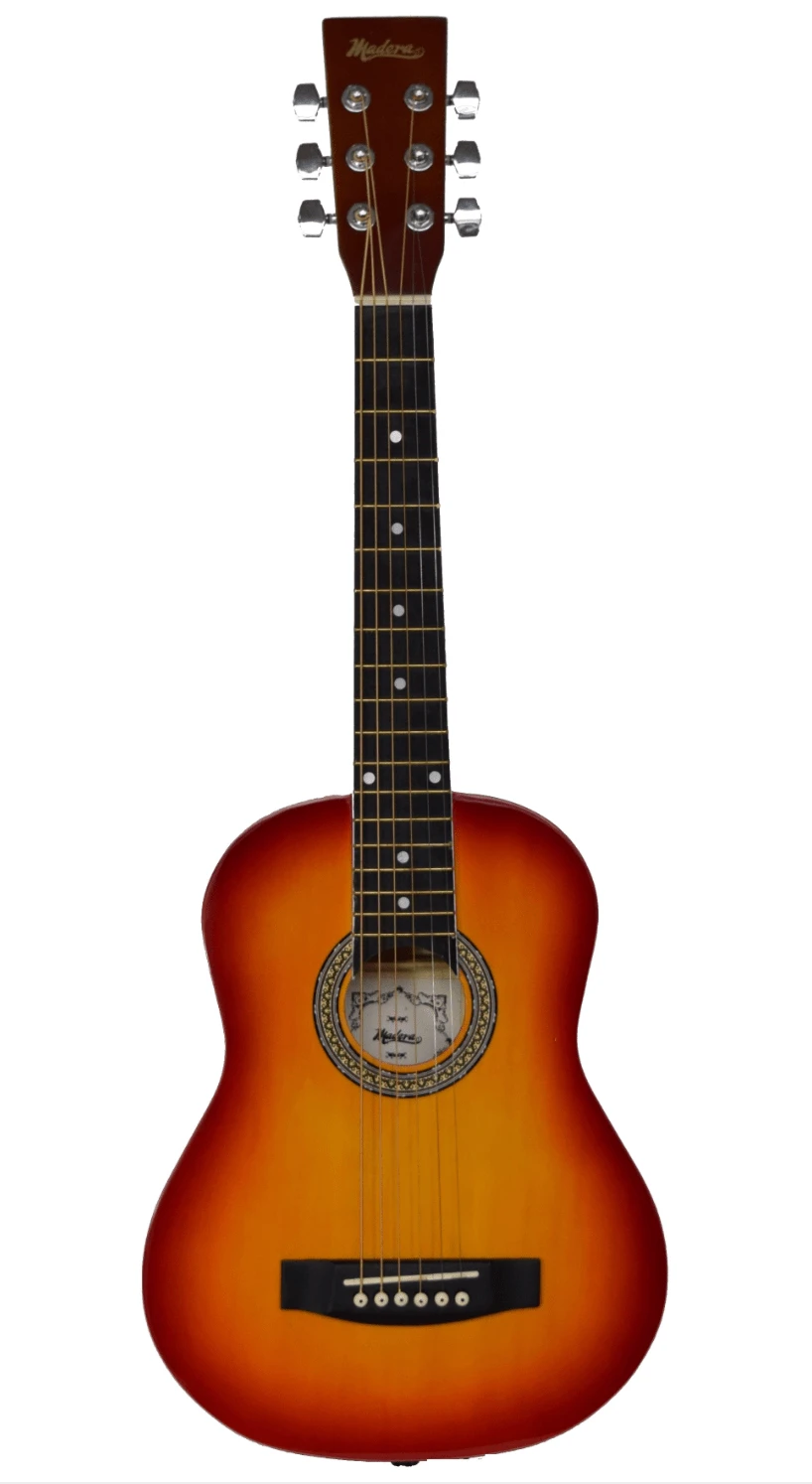 The Madera LD301 is an excellent quality beginner guitar for kids age 5-10 – or as a travel guitar. The LD301 has an easy playing neck and is available in a variety of great colours.