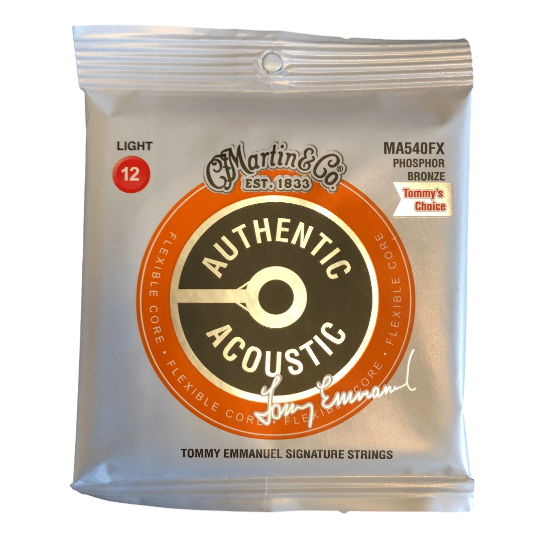 Martin Authentic Acoustic Flexible Core strings reduce finger fatigue; they are ideal for fingerstyle and note bending and offer comfort without sacrificing tone.