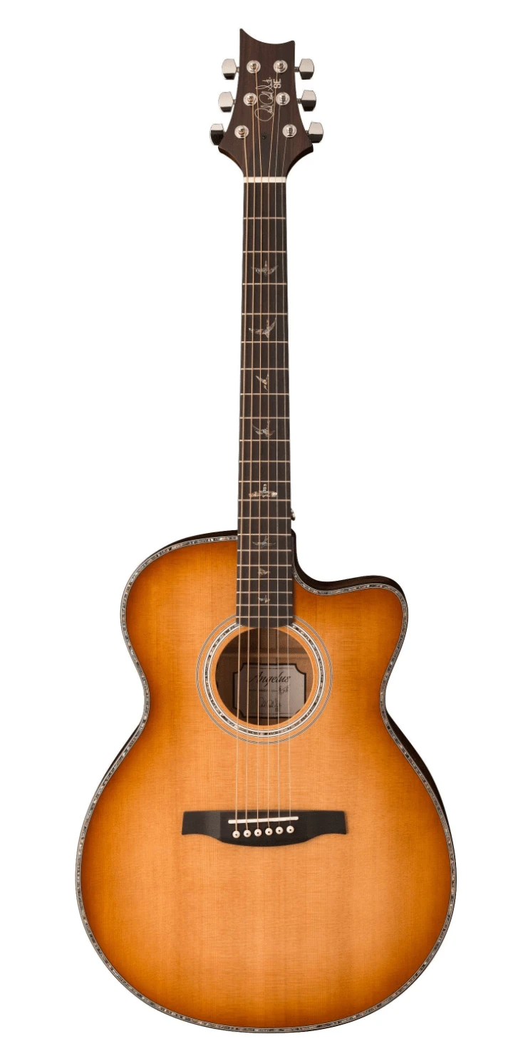Additional high-quality features include a solid spruce top, ebony fretboard and bridge, bone nut and saddle, as well as PRS trademark bird inlays and headstock design. Ships with a high-quality hardshell case.Â