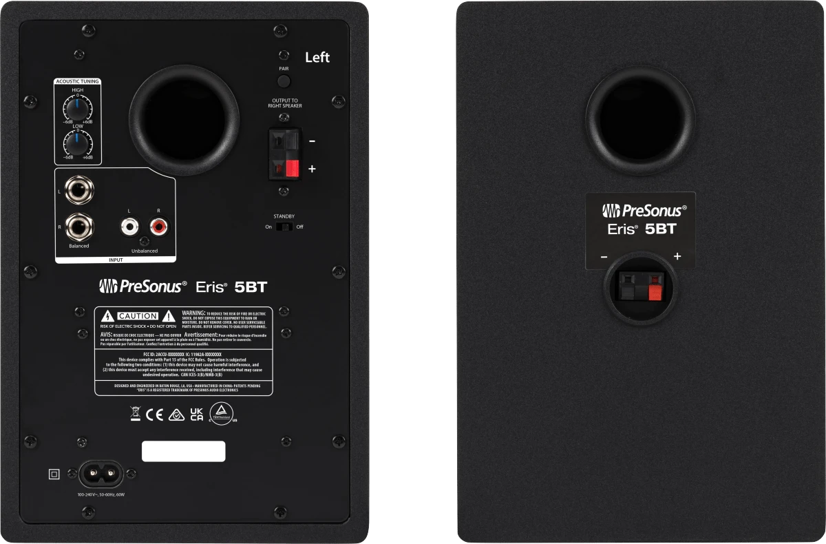 PreSonus® Eris®-series studio monitors are used worldwide by audio engineers and producers who need to hear every detail of their recordings. Eris 5BT media reference monitors deliver studio-quality sound in an elegant, compact form factor that makes them ideally suited for bedroom studios, video production, and high-fidelity gaming setups.