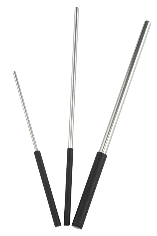 Sabian stainless steel Triangle Strikers, sold individually, are 9″ long and available in three diameters; 1/8″, 3/16″ and 1/4″. Each striker is fitted with a rubber insulator to maximize metal to metal contact.