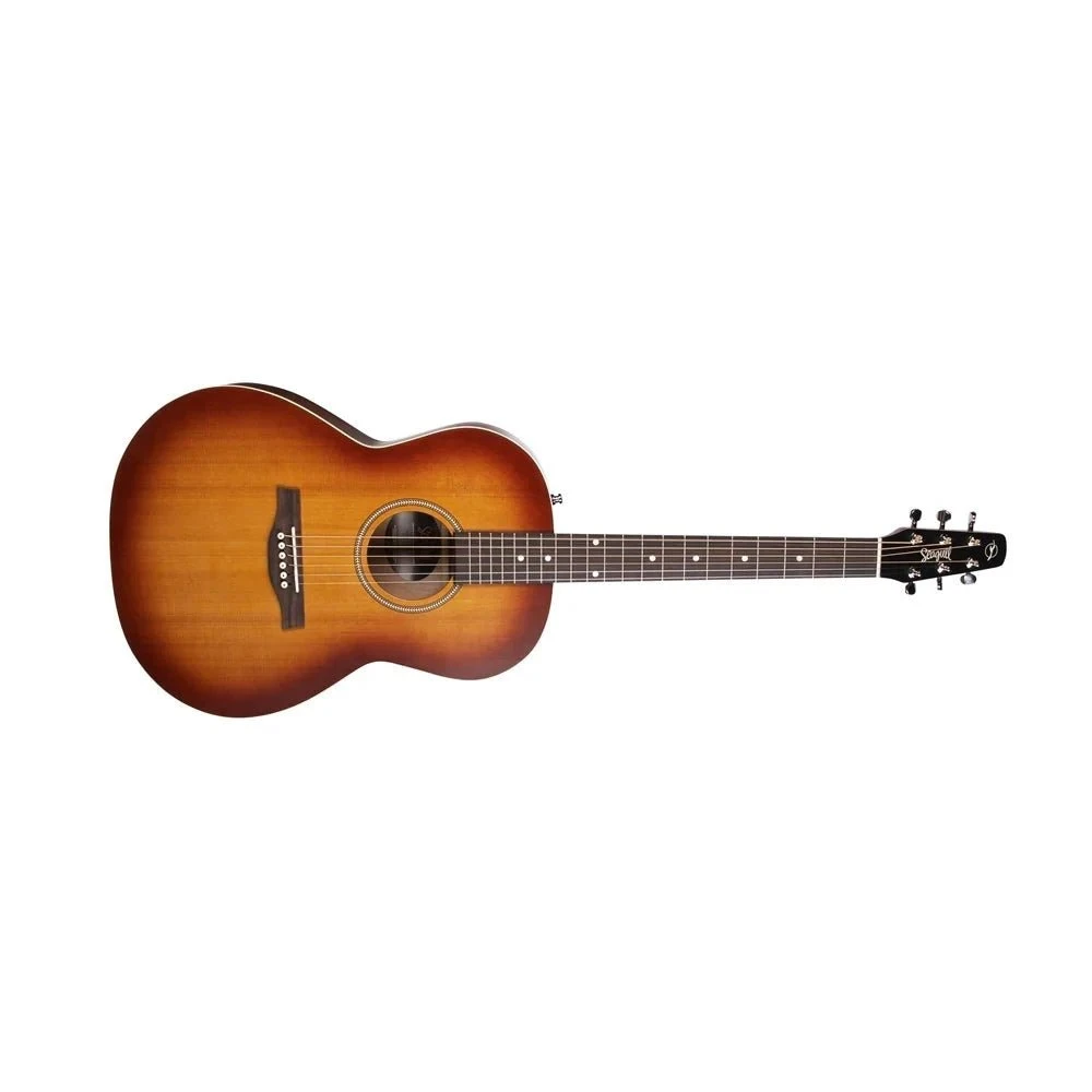 By popular demand, the Seagull Entourage Rustic Burst is back! The Canadian made Entourage Folk Rustic Burst features our classic breath-through rustic finish, highlighting the unique wood grain of each guitar and accented by an elegant cream binding. The Folk body size is extremely comfortable to hold and a pleasure to play. With its slightly smaller body size compared to a classic dreadnaught, the Folk exudes a complex harmonic richness thanks to the tight bottom end, rich velvety mids and bell like highs.