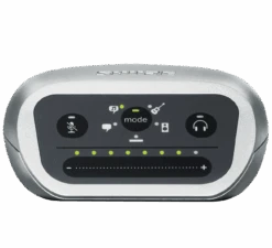 Digital audio interface connects a professional XLR microphone or 1/4″ instrument output to a computer or mobile device. Features include 5 DSP preset modes for EQ, compression, limiter settings, gain control, mute, and volume, and phantom power.