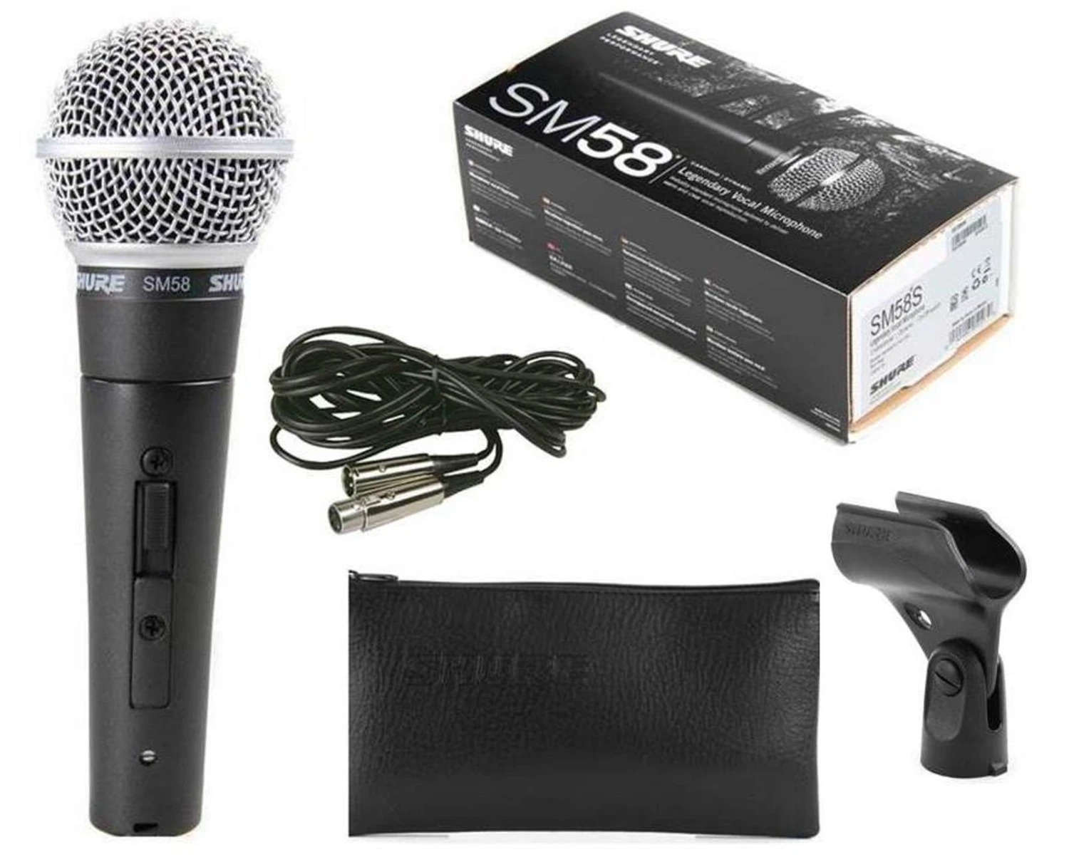 The SM58-CN Vocal Microphone from Shure features a unidirectional (cardioid) dynamic vocal design, suitable for professional vocal use in live performance, sound reinforcement, and studio recording. A built-in spherical filter minimizes wind and breath “pop” noise, and the cardioid pickup pattern isolates the main sound source while minimizing unwanted background noise. The microphone offers durable construction, a high-quality shock mount system, and a steel mesh grille for withstanding rough handling. The SM58-CN is designed to perform consistently both outdoors and indoors, and when used for singing or speech applications. The microphone includes a swivel adapter, a 25′ XLR to XLR microphone cable, and a zippered pouch.