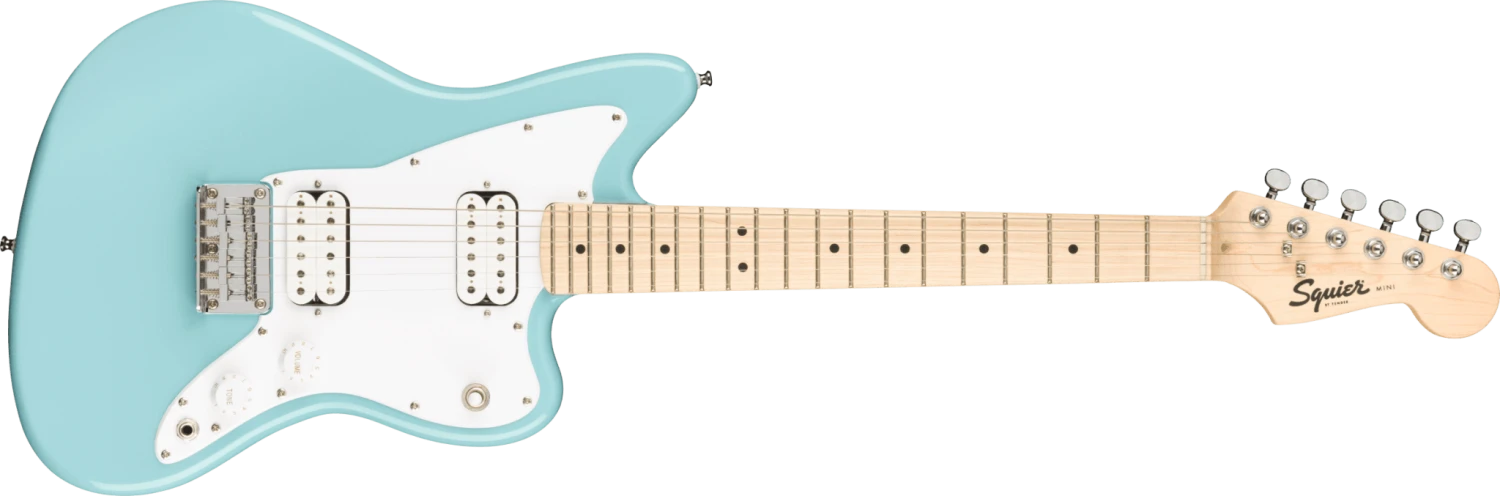 The Squier Mini Jazzmaster® HH is the perfect companion for players seeking a reduced-size instrument with classic styling and familiar Fender® tone.