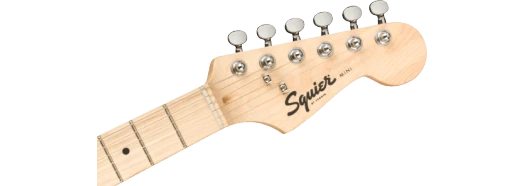 Highlights include a thin and lightweight body, an easy-to-play “C”-shaped neck profile, dual Squier humbucking pickups with 3-way switching for sonic variety, and a hardtail bridge for solid tuning stability.