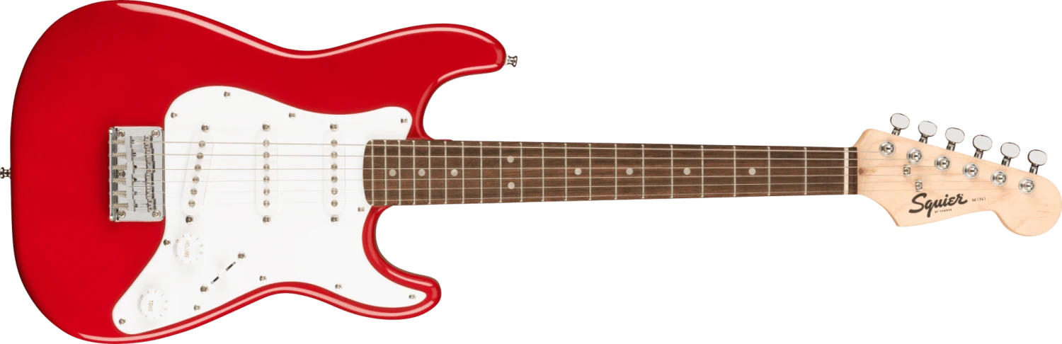 The Squier Mini Stratocaster® is the perfect companion for players seeking a reduced-size instrument with classic styling and familiar Fender® tone. Highlights include a thin and lightweight body, an easy-to-play “C”-shaped neck profile, a trio of Squier single-coil pickups with 5-way switching for sonic variety, and a hardtail bridge for solid tuning stability.