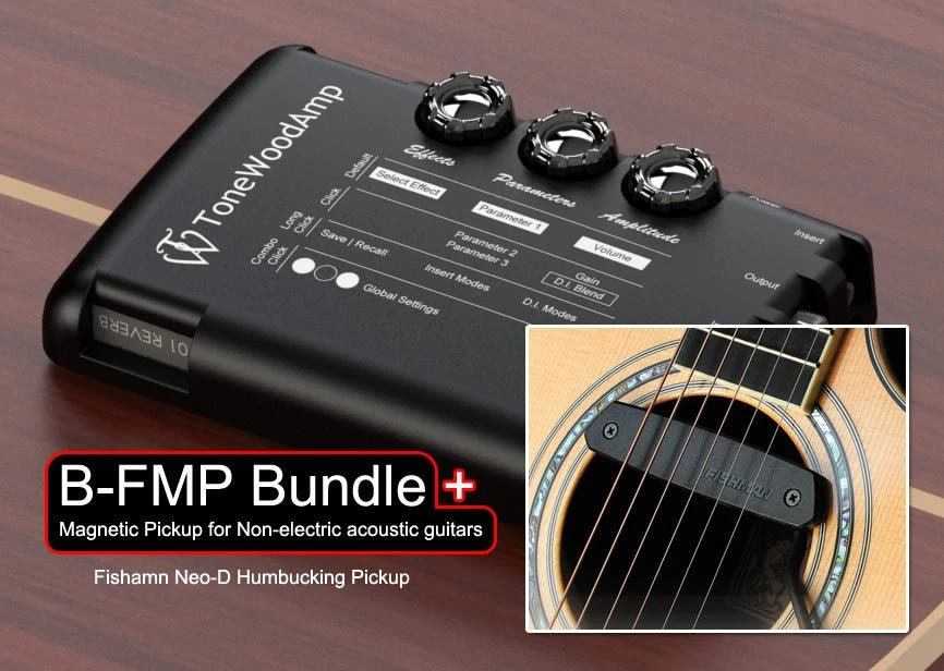 If your guitar has steel strings but does not have a pickup then this is the bundle you need. ToneWoodAmp bundled with the Fishman Neo-D soundhole pickup.