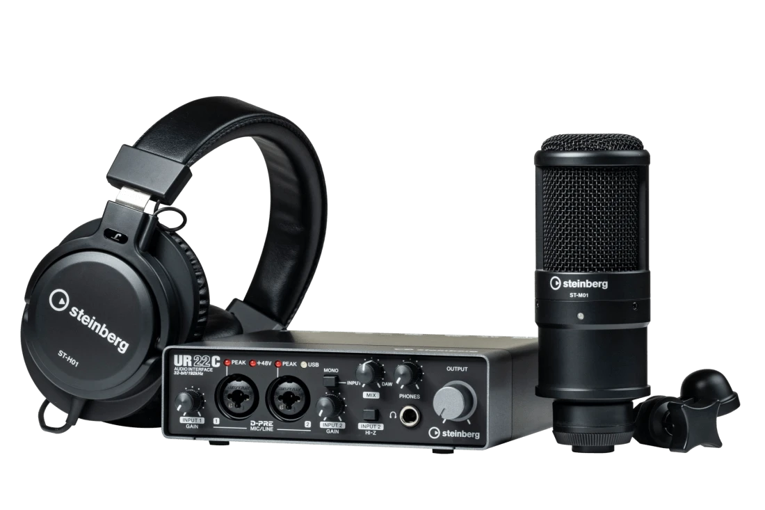 The UR22C Recording Pack is the complete package for recording high-quality music, podcasts or interviews and for live streaming audio. The compact, rugged UR22C audio interface has all the connections and facilities needed to record in fantastic 32-bit/192kHz quality, with the included ST-M01 microphone and ST-H01 headphones ensuring that you have everything you need to make great recordings.